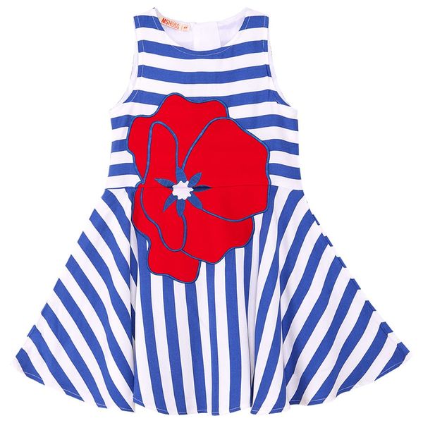 Girl dress made of striped woven fabric. Has a big poppy applique on., Material F1: 100% Viscose, F2: 100% Cotton, Washing ins. Machine wash at 30°C. Wash inside out. Do not bleach. Do not tumble dry. Iron backside on low heat.