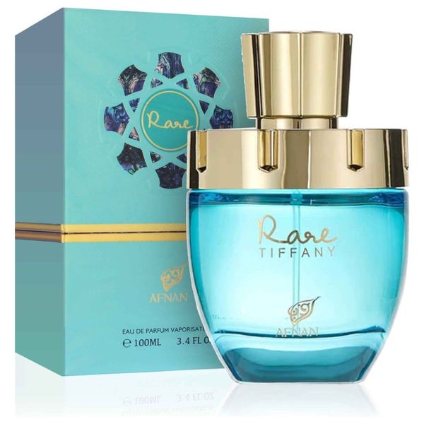 Rare Tiffany by Afnan is a unisex Eau de Parfum spray presented in a turquoise bottle with a golden cap. This refined fragrance offers a modern, elegant character suitable for daily wear and special occasions. The 100 ml bottle provides long-lasting scent that transitions from daytime freshness to evening sophistication. Ideal for those seeking a versatile signature scent with a contemporary feel.