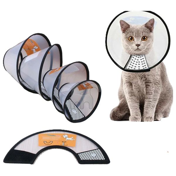 Prevents licking or scratching of wounds after surgery, Made of lightweight clear plastic panels with soft edges for cat comfort, Adjustable to fit most necks, Easy to clean