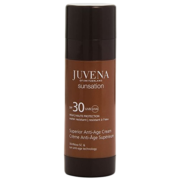A high protection, anti aging sunscreen for the face with 30 degree, featuring a waterproof formula to improve skin quality for a more elastic and healthy appearance, suitable for all skin types.