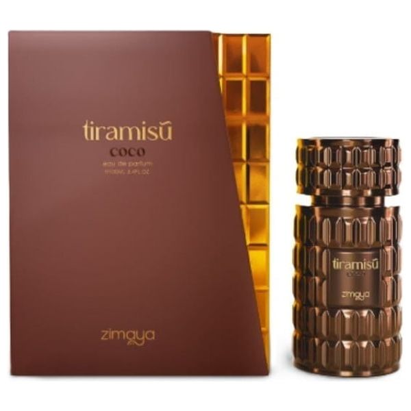 Zimaya's Tiramisu Coco is a unisex eau de parfum that blends warm amber and vanilla with gourmand notes for lasting appeal. The top notes of amaretto and coffee awaken the senses, followed by a heart of ice cream, biscuit, and vanilla, while the base of vanilla, brown sugar, and amber adds depth and warmth.