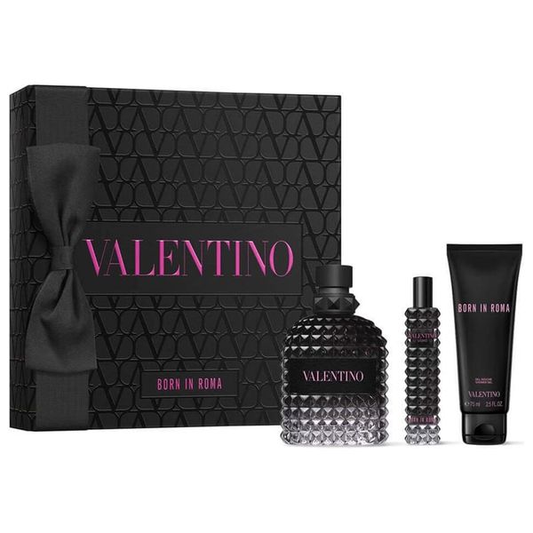 This Valentino Perfume Set for men includes Born In Roma Eau de Toilette 100 ml, a 15 ml travel-size EDT, and a 75 ml shower gel, all packaged in a stylish gift box. The fragrance opens with mineral notes, salt and violet leaf, followed by sage and ginger in the heart, and settles with vetiver and woody notes in the base.