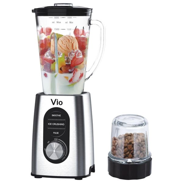 1200W 220-240V~ - Glass blender bowl 1.8L and grinder cup ⁃ Stepless speed turn knob - 6 stainless steel blades Stepless speed control T - Stainless steel body ⁃ Ice crush function, smoothie and PULSE mode ⁃ Over heating protection